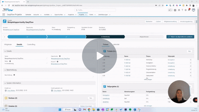 Oder schau dir einfach unser Video an, in welchem wir dir zeigen, wie du EasyFlow Projekte operativ nutzen kannst: