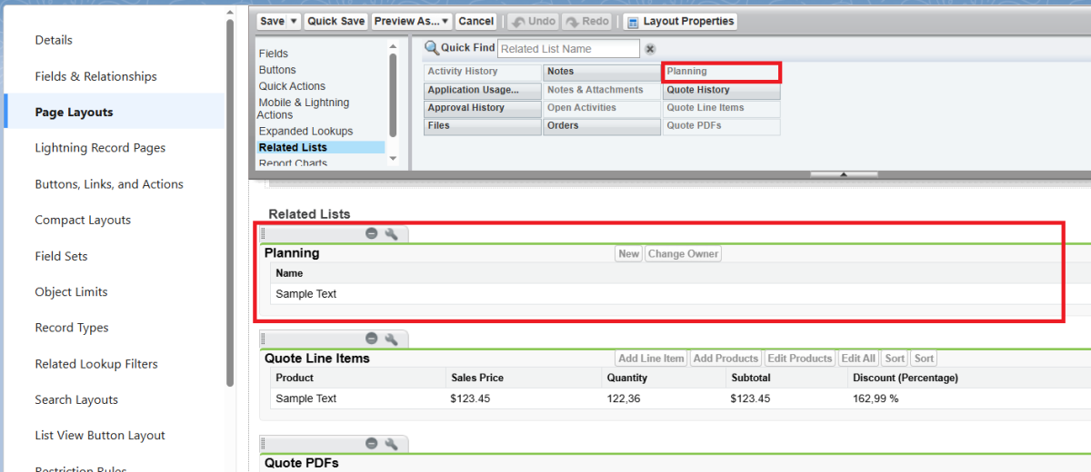 Um dein Angebot einfach zu erstellen und dein Projekt detailliert vorzubereiten, solltest du auf dem Objekt „Angebot“ die Schaltfläche „Projektplanung“ hinzufügen. Gehe hierzu auf „Setup“ > “Objekt-Manager“ > Suche nach „Angebot“ > gehe auf „Bearbeiten“ > „Seitenlayout“.