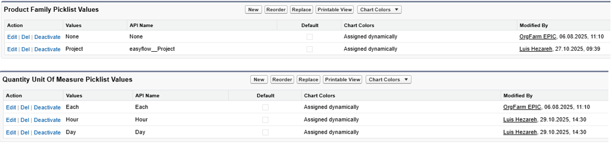 - Für den Auswahllistenwert „Projekt“ muss der API-Name „easyflow__Project“ lauten.