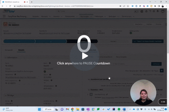 > Nachdem die Rechnung erstellt wurde, klicke nun auf den neu erstellten Rechnungsdatensatz in deiner Opportunity.
