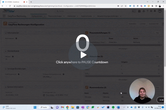 Hinweis: Wir empfehlen, für jede gewünschte Phase ENTWEDER eine Phaseneinstellung ODER die Erstellung über Salesforce Flow zu konfigurieren. Bei verschiedenen Methoden der Rechnungserstellung für dieselbe Phase kann die korrekte Zuweisung der offenen Beträge nicht garantiert werden.