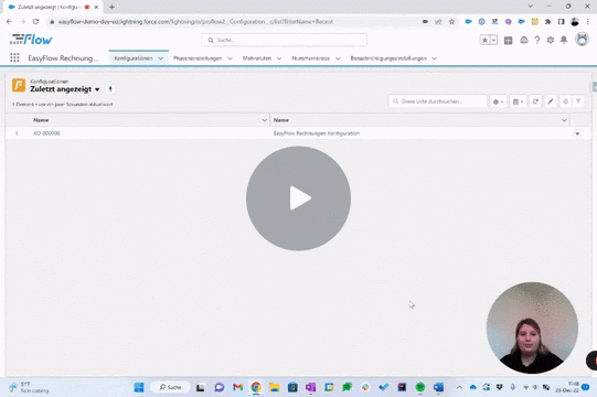 | Konfigurationen | Mithilfe eines im Rahmen der Installation erstellten „EasyFlow Rechnungen Konfiguration“-Datensatzes regelst du die grundsätzliche Konfiguration der Anwendung. |